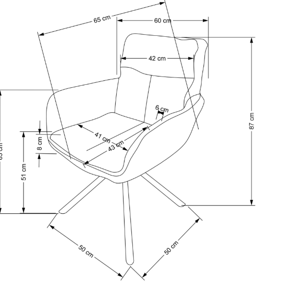 - Sėdimosios dalies aukštis: 51 cm