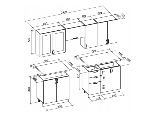 • Stalviršio tipas: Atskiras kiekvienai spintelei
