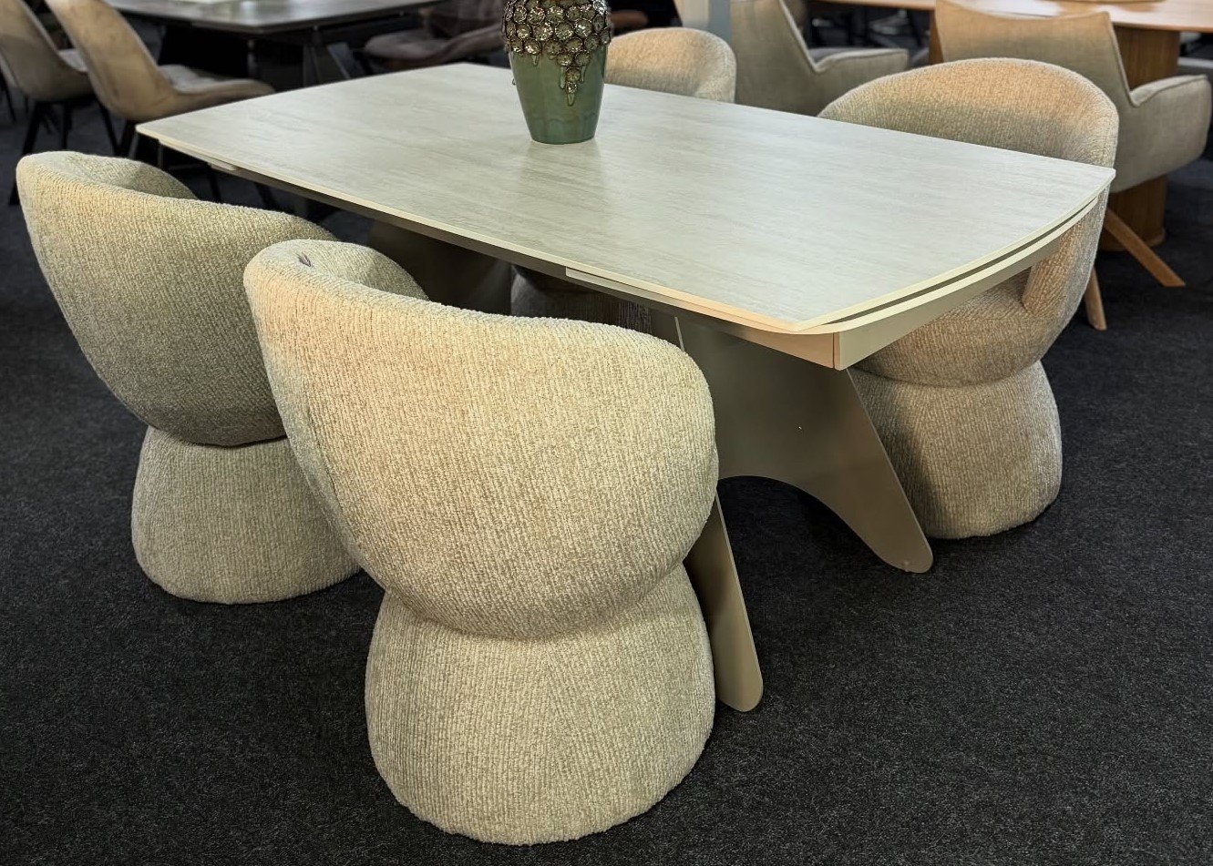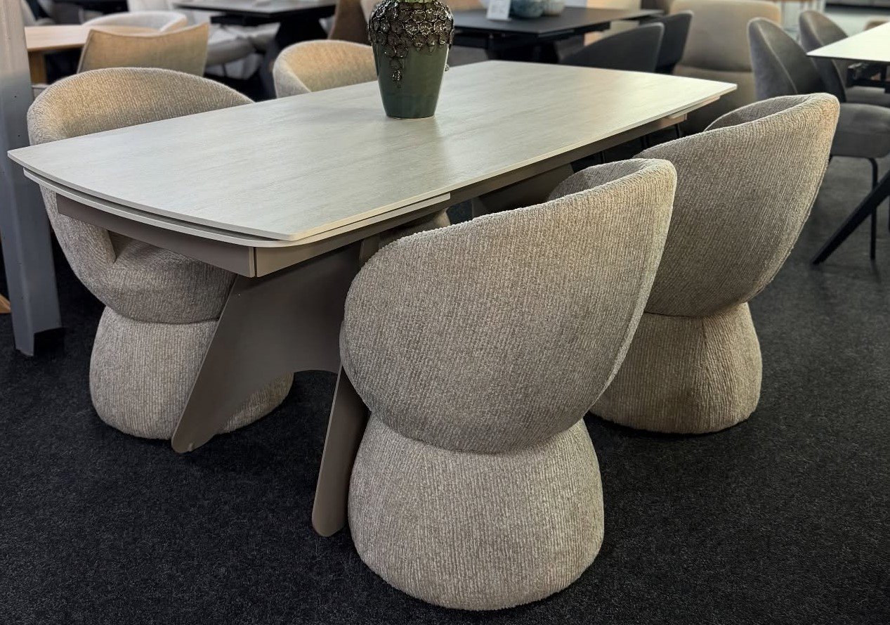 - Kėdės į kainą neįskaičiuotos. Prie stalo galima komplektuoti įvairias kėdes.