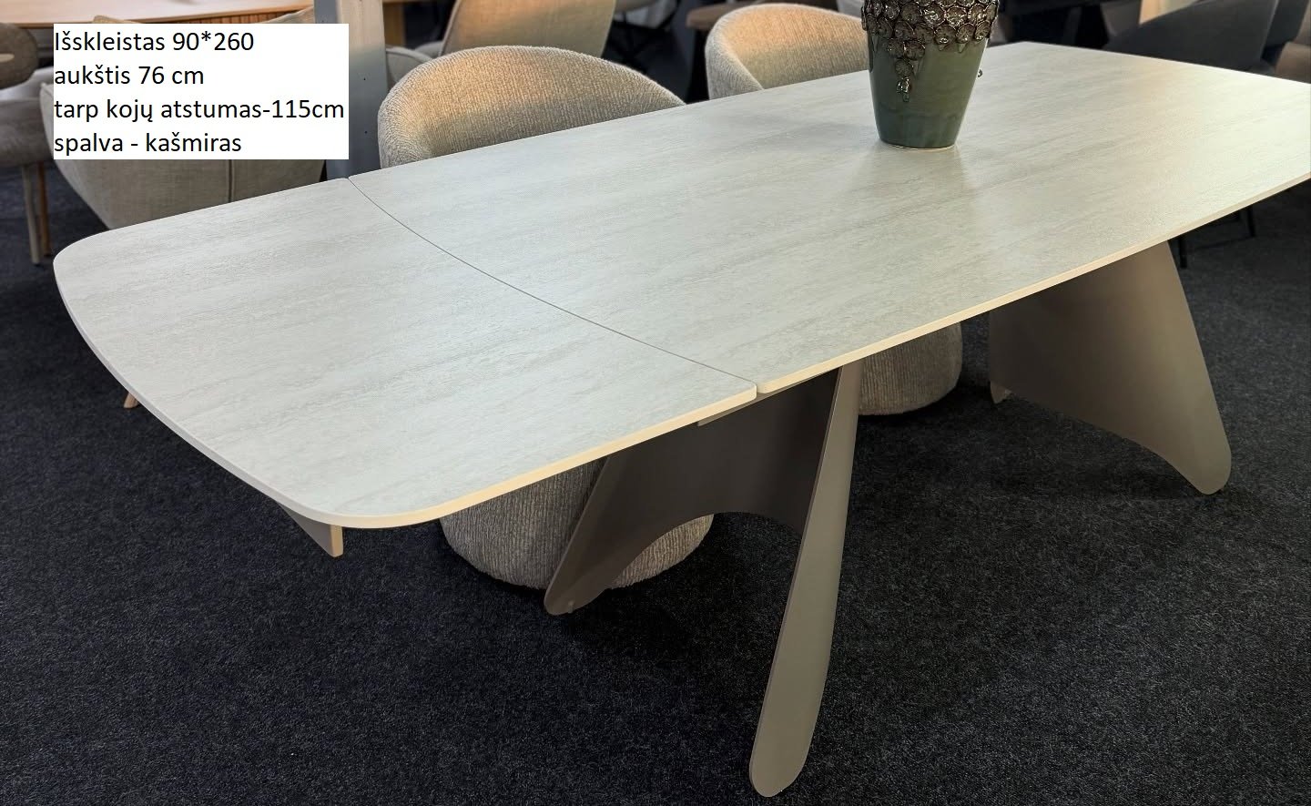 - Bendri išmatavimai (Ilgis/Plotis/Aukštis): 180-260 cm / 90 cm / 76 cm