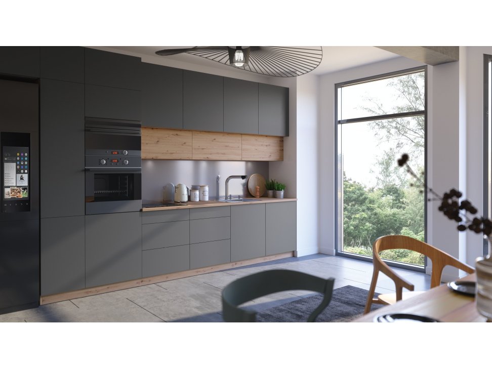 - Klasikinė juoda plastikinė rankena arba sistema be rankenos (Push To Open).