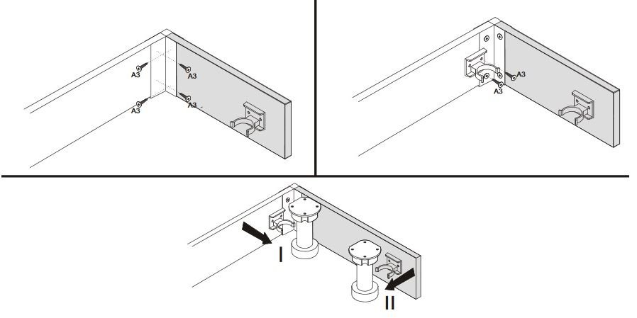 - Šalia šios spintelės negalima komplektuoti spintelių kurios turi stalčius.