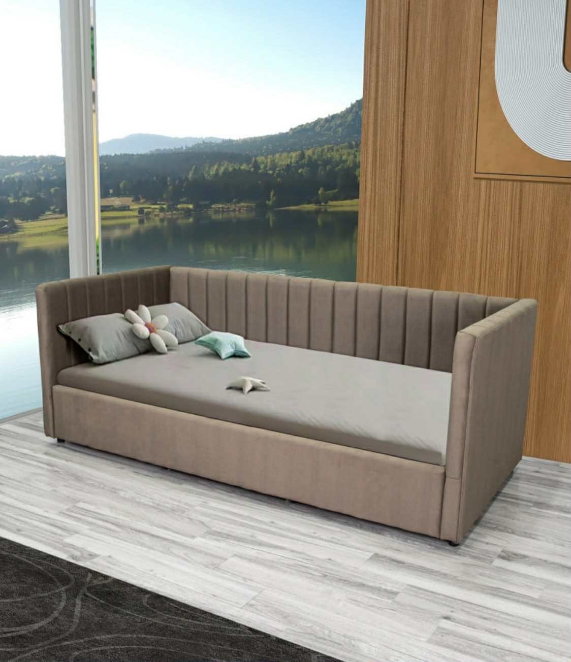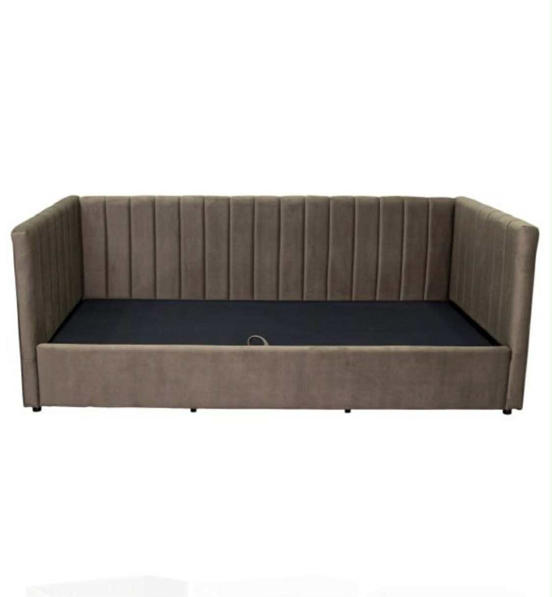 Viengulė lova -kušetė– stilingas, patogus ir funkcionalus baldas, tiesiog sukurtas kokybiškam poilsiui. Tokia lova puikiai tiks paauglio miegamajame arba vienam miegančiam žmogui – 90×200 cm miegamoji erdvė suteiks pakankamai vietos geram miegui.Savybės: Dekoratyvinis dizainas: Abi lovos atramos puoštos vertikaliomis siūlėmis, kurios suteikia baldui subtilaus rafinuotumo. Prabangus veliūro audinys: Lova aptraukta minkštu ir elegantišku veliūriniu audiniu, kuris yra ne tik malonus liesti, bet ir suteikia išskirtinį stilių. Šis audinys yra draugiškas gyvūnams ir lengvai valomas, todėl baldo priežiūra bus itin paprasta! Universalus kampinis dizainas: Dvi minkštos dalys gali būti sujungiamos iš bet kurios pusės, todėl lova lengvai pritaikoma įvairiems kambario išplanavimams. Talpi patalynės dėžė: Lova turi erdvią dėžę su skyriais, kurioje patogiai laikysite patalynę, drabužius ar kitus daiktus. Dujiniai amortizatoriai: Lovos pakėlimo mechanizmas su dujiniais amortizatoriais leidžia lengvai pakelti plokštę su čiužiniu ir pasiekti dėžėje laikomus daiktus. Tvirtas dugnas: Kokybiška plokštė užtikrina lovos stabilumą ir ilgaamžiškumą, todėl ji išliks patikima daugelį metų.Spalva – t. alyvuogė.Kaina nurodyta su čiužiniu.
