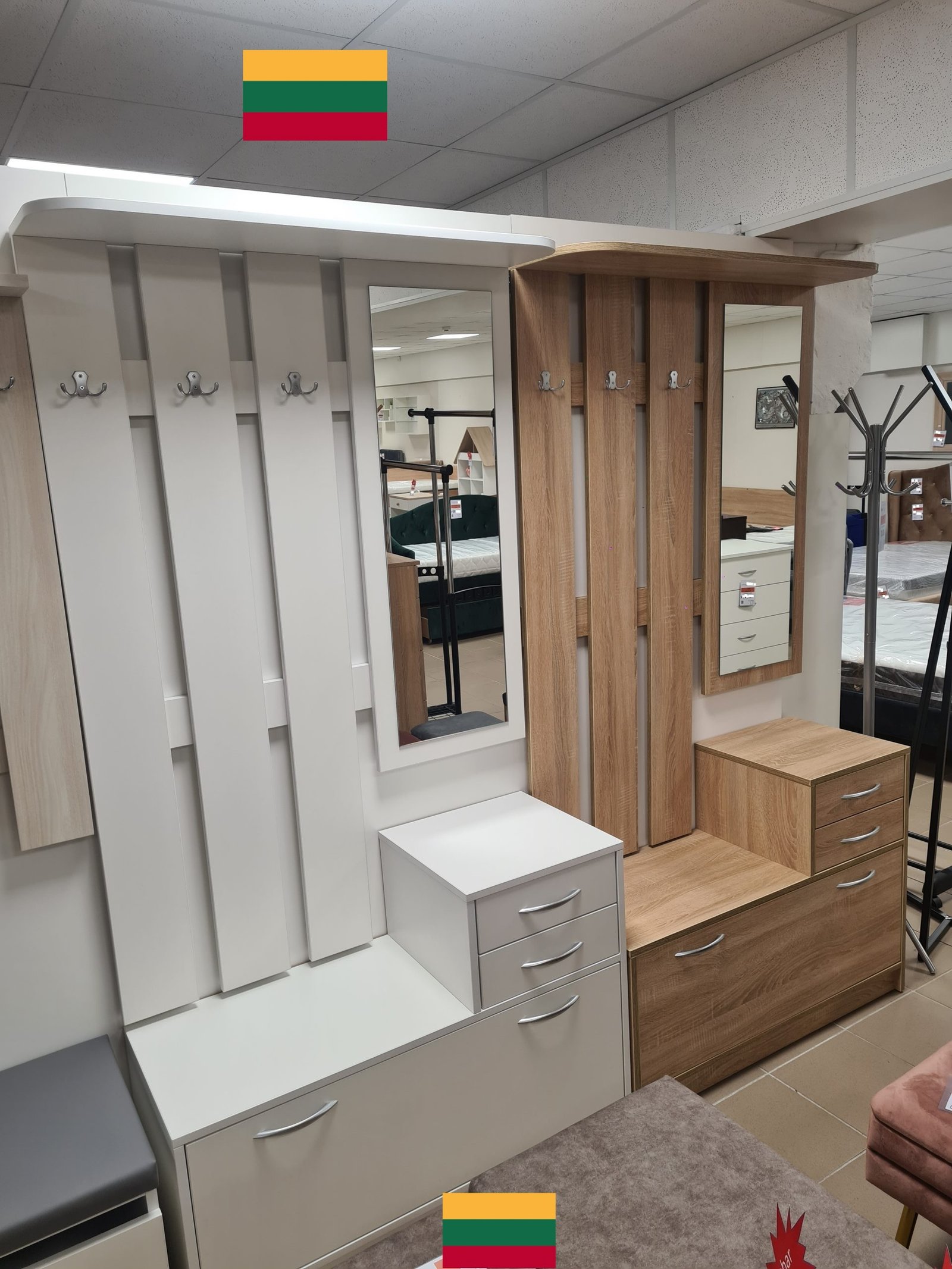 • Komplektuojama- rūbų pakaba su veidrodžiu